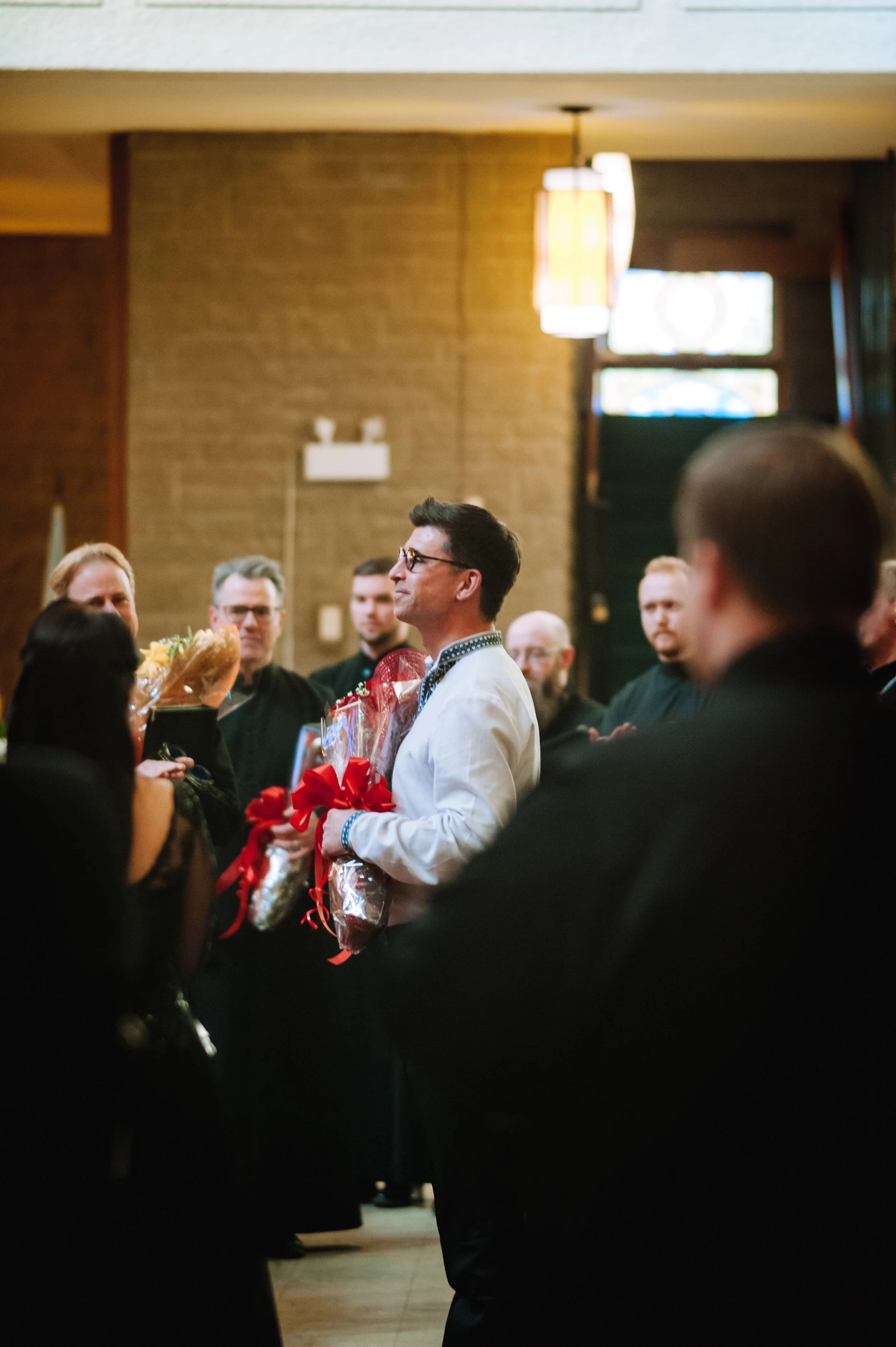 The Axios Men's Ensemble-is a male chorus founded in 2003 under the direction of Boris Derow. Its primary focus is to sing Eastern sacred music both in liturgical contexts and in concert settings for contemporary audiences, often collaborating with other ensembles and soloists. The choir has made a number of recordings. Most recently they have collaborated with Michael Zaugg and professional singers from across North America and Ukraine to produce The Resurrectional Divine Liturgy of St. John Chrysostom by Fr. John Sembrat OSBM (2015) and Christ is Born: Hymns and Carols of the Nativity (2019). The choir has staged concerts across Canada and the United States.